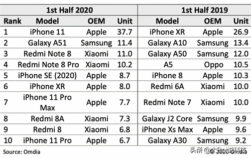 2020年上半年全球十大畅销手机榜单