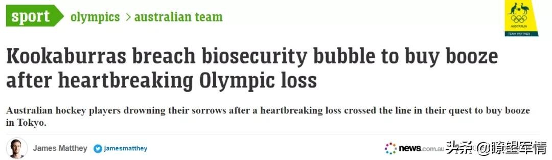 澳大利亚曲棍球运动员在赛场失利后,违反“防疫气泡”买酒,澳大利亚新闻网6日通报了这件事。