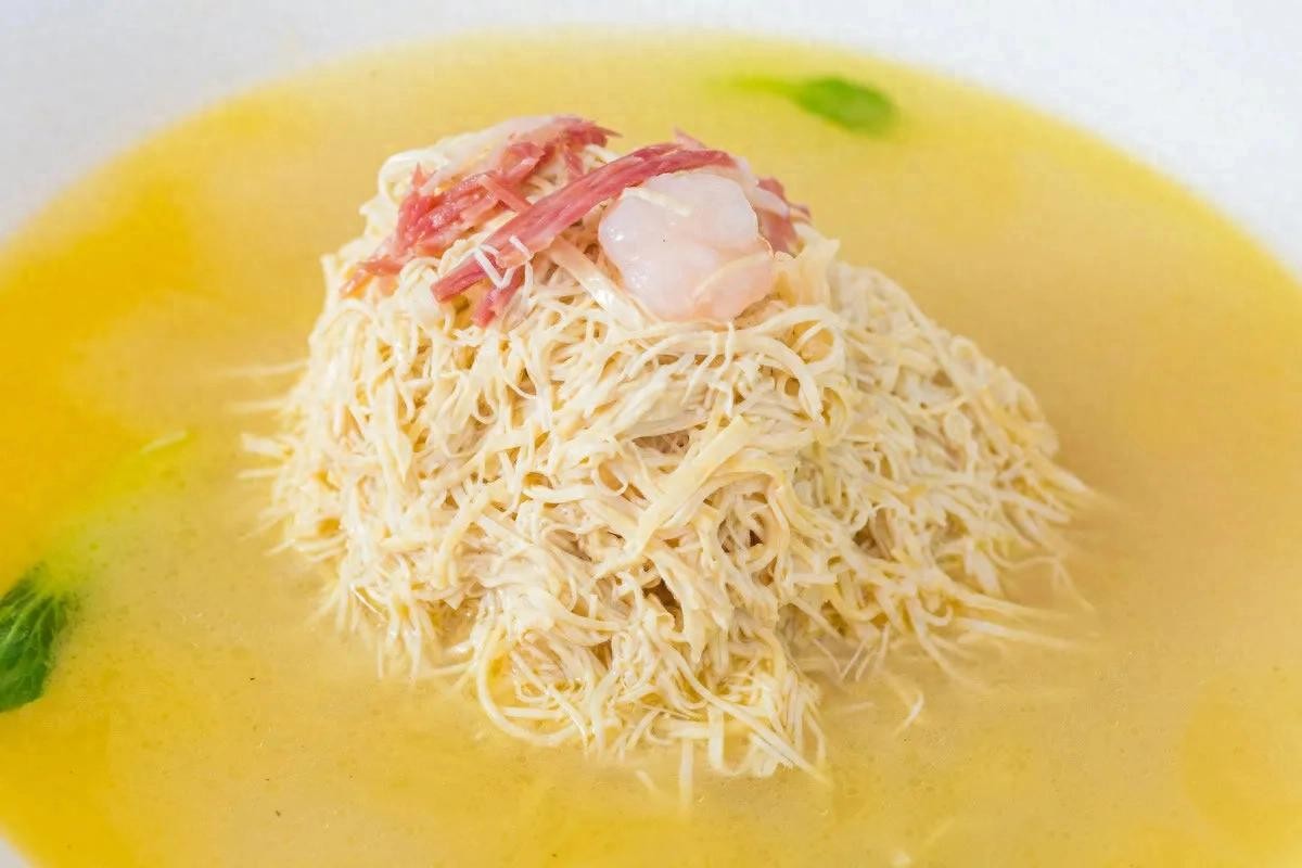 又称“鸡汁煮干丝”,“鸡火煮干丝”,前身为“九丝汤”,属淮扬菜系,为淮扬经典名菜之一,也是典型的以讲究刀工火候著称的淮扬菜的代表作之一。
