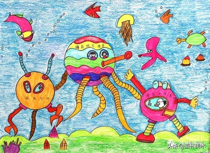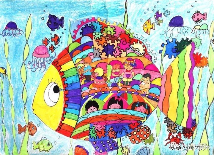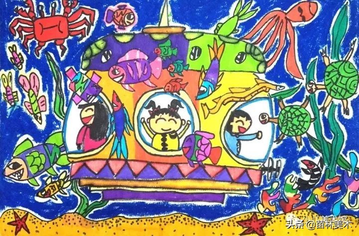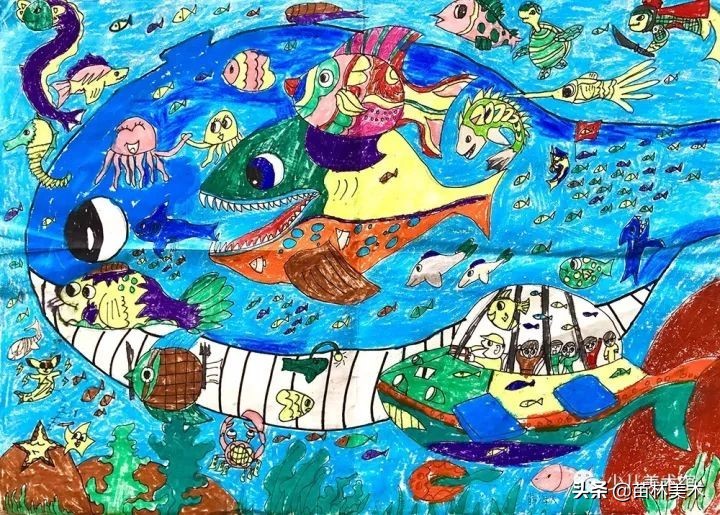 小朋友们心中的海底世界是什么样子的呢,深蓝的海水里有各种吐着泡泡的鱼儿、游来游去的海马、既有凶猛的鲨鱼也有善良的美人鱼……小朋友们的想象力真是丰富多彩!