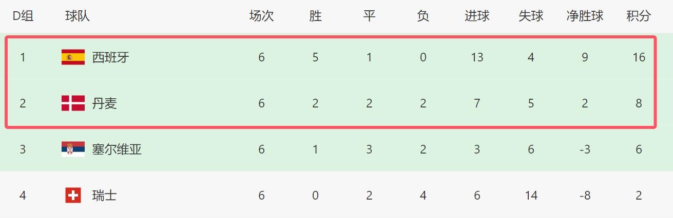 截至目前,欧国联八强已经全部出炉,除了克罗地亚队之外,这一夜丹麦队也顺利出线,他们在客场0-0战平了塞尔维亚队,拿到D组第二。在此之前,葡萄牙队、西班牙队、法国队、意大利队、德国队和荷兰队这6大强队,都已经提前晋级,他们也是本届欧国联冠军最有力的竞争者。不出意外的话,明年的淘汰赛,冠军将会在这6大豪门当中产生,至于克罗地亚队和丹麦队,他们看起来只是凑数的,这2队想夺冠,难度实在太大了!