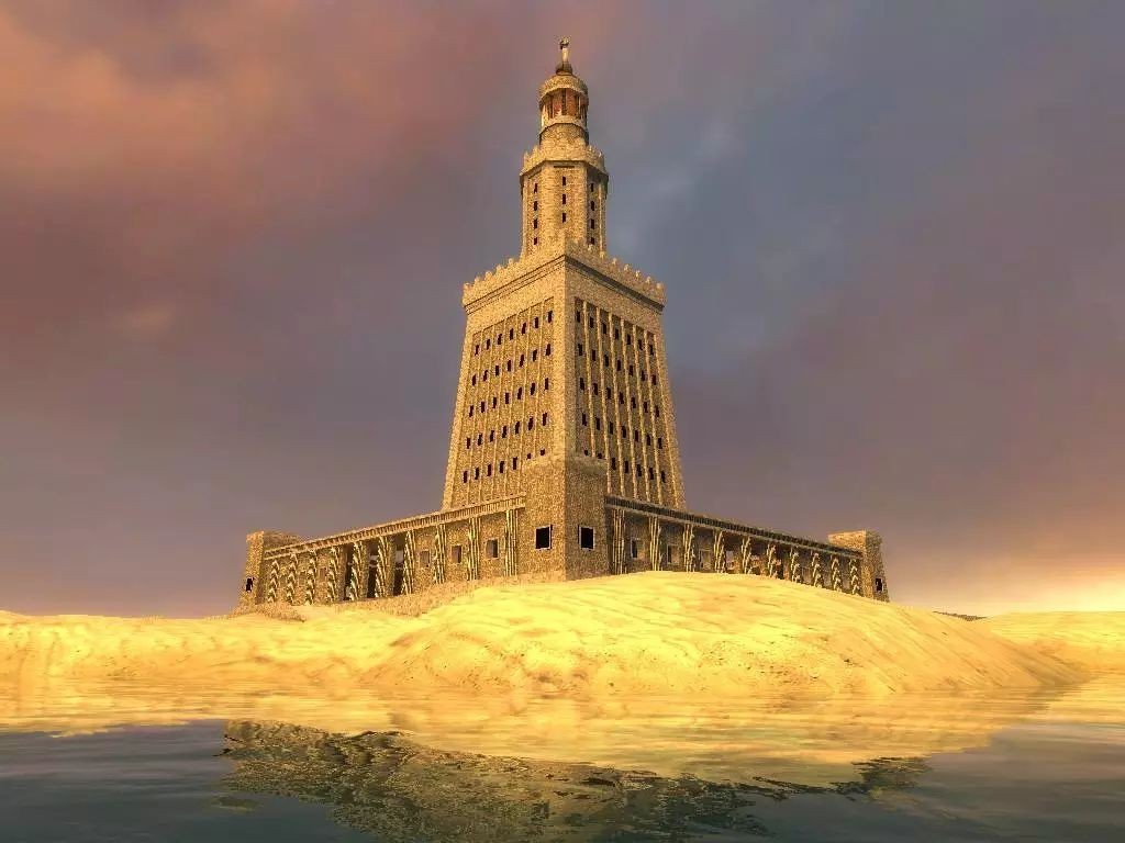 埃及亚历山大灯塔是世界上的第一座灯塔;灯塔在黑夜中发放耀眼的光芒,照耀整个亚历山卓港,保护着海上的船只,是当时世上最高的建筑物。
