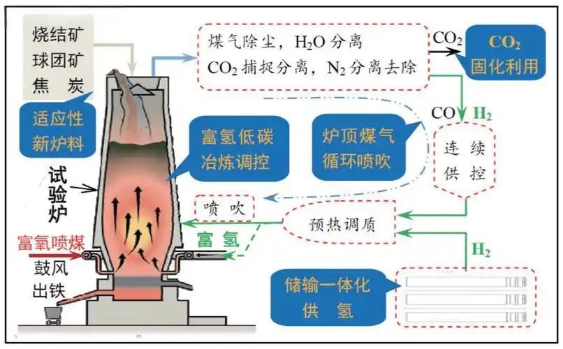 向高炉鼓风中添加氢气提高燃料利用率减少焦炭用量显著降低CO2排放