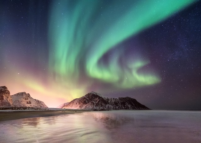 在北极地区,极夜和极昼交替出现,因为地球的倾斜使得北极在一段时间内无法接受到阳光。而在极夜的夜晚,北极光的美景才得以呈现。当太阳活动剧烈时,带电粒子会迅速涌向地球,引发北极光的频繁出现。在这样的时刻,幸运的观赏者将有机会在黑夜中目睹北极光的壮丽光影,这成为了许多探险家和摄影家的梦想。