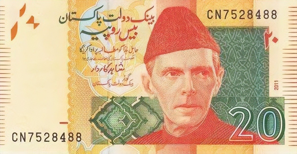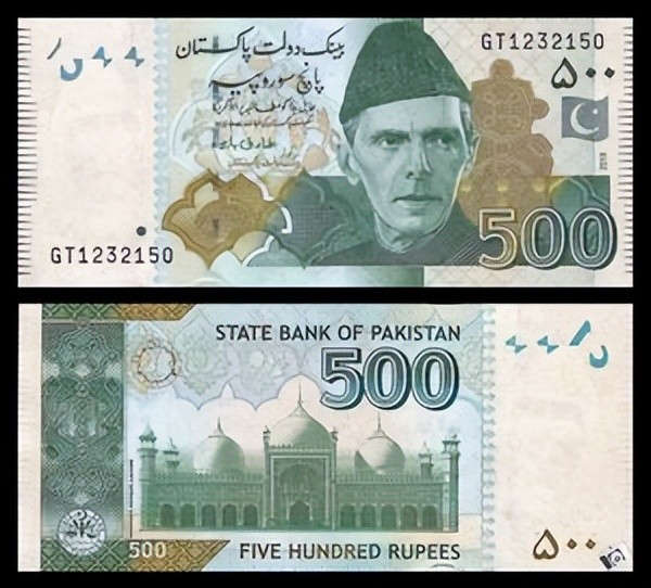 纸币正面为穆罕默德·阿里·真纳的头像,反面为巴基斯坦的风景名胜。