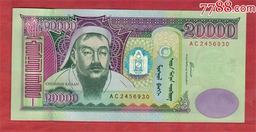 500图格里克,1000图格里克,5000图格里克,10000图格里克,20000图格里克正面人物均为元太祖成吉思汗(孛儿只斤·铁木真)