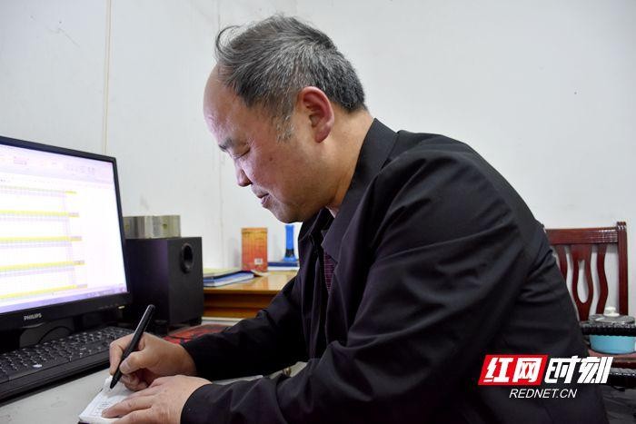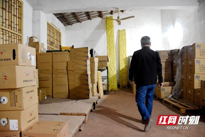 吴春平在中国电信望城分公司库房记录物料出入数据。