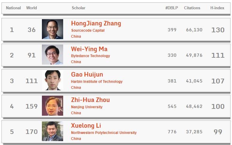 另外进入榜单前 1000的22个大陆计算机专家中,排名第一的是源码资本的合伙人张宏江(原金山软件CEO)、另外排名第二的是我们目前在用的今日头条的原副总裁马维英,这两人也是大陆仅有的两个进入前100名的人才,分别位列第36名以及第91名。