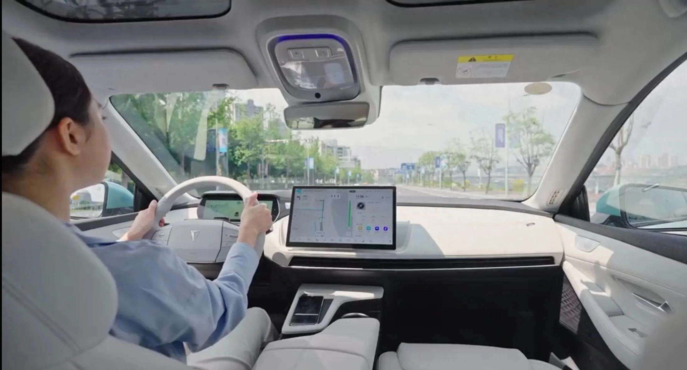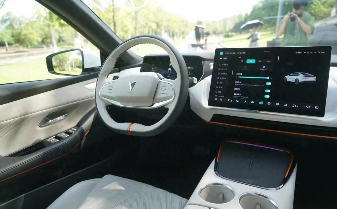在智能方面,深蓝SL03也是遥遥领先。中控台上搭载的随驾智能转向向日葵智慧屏、全液晶显示屏和AR-HUD抬头显示系统都体现了其智能化的水平。