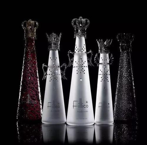 Fillico是来自日本大阪的矿泉水,价格相对对于上面两种“平价”许多,750ml售价是219美金,每月限售5000瓶它的昂贵之处在于,瓶身的霜花装饰图案,由施华洛世奇水晶和黄金涂层结合。瓶盖的皇冠造型是特别之处。