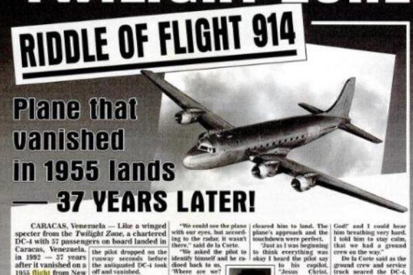 据传1990年的一天,914航班突然降落在委内瑞拉的机场降落台上,当时塔台都感到茫然,等到包围过去询问之下,才发现这架飞机是泛美航空公司的飞机,在1955年就已经起飞,虽然时隔三十多年,但是飞机上的人们觉得似乎只过去了几个小时。