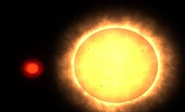 说到星星,每个人心中的第一个想法就是太阳。但是你应该知道,并不是所有的星星都像太阳一样巨大而耀眼。红矮星仅占太阳质量的7到40%。尽管它们通常很小,但它们的恒星数量确实最多,达到70%颗。这张照片是红矮星(左)和太阳(右)的对比。